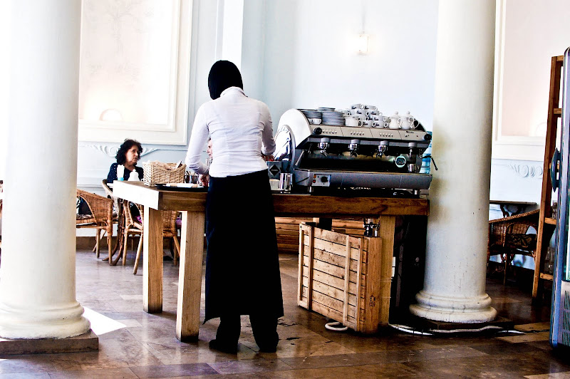 Poniższa recenzja jest też wspomnieniem swoistego fotograficznego wyzwania: pierwszy raz zdobyłam się na odwagę, aby zapytać mengerki (chyba, kręciła się po sali bez fartucha), czy mogę fotografować. Trafiłam na porę kiedy było mało klientów, ale zdjęcia i tak starałam się robić szybko i sprawnie, tak aby nie peszyć przebywających w kawiarni gości.. A sama kawiarnia? Jest wręcz stworzona do fotografowania. Jasne, ascetyczne, przestronne wnętrze… Jeśli macie ochotę na więcej, zapraszam!