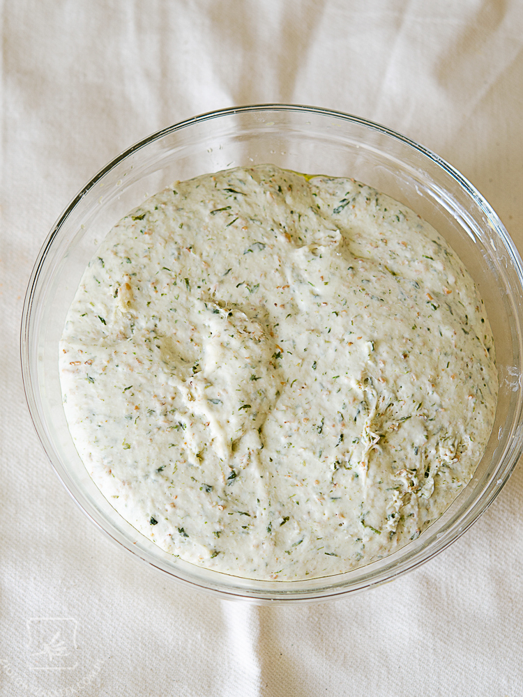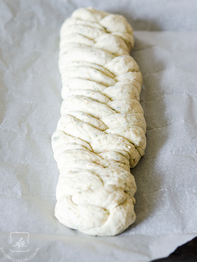 Na pierwszy ogień pójdą bułeczki z oliwą, czosnkiem niedźwiedzim i chrzanem – u mnie przybrały formę chałki plecionej z sześciu warkoczy (jeśli chcecie, mogę Wam kiedyś pokazać na filmie, jak to się robi). Do swoich bułeczek użyłam czosnku zamrożonego, jednak jest to jeden z tych przepisów, w których można wykorzystać czosnek suszony: ma nieco inny smak niż świeży, jednak też świetnie się nada.