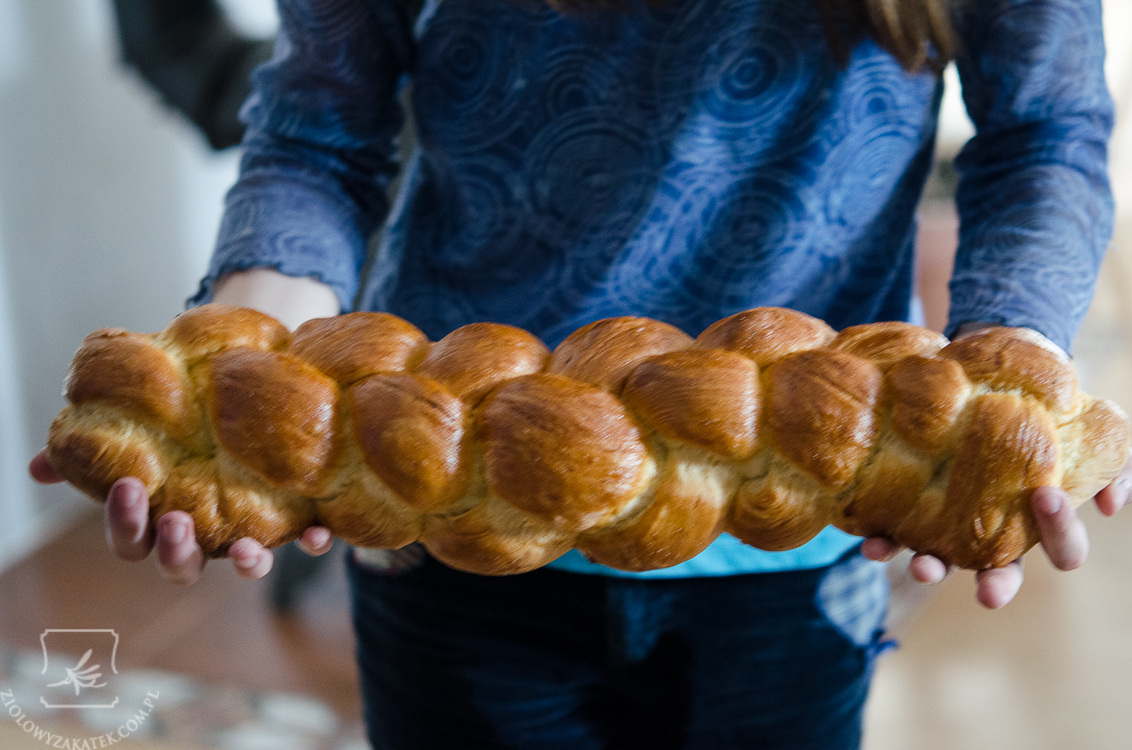 Chałka jest bardzo duża – tutaj trzyma ją moja siostra. Z przepisu wychodzą dwie:)