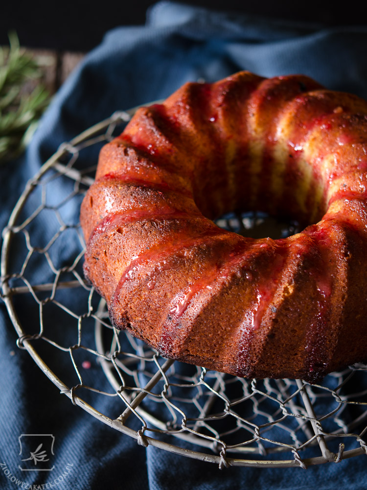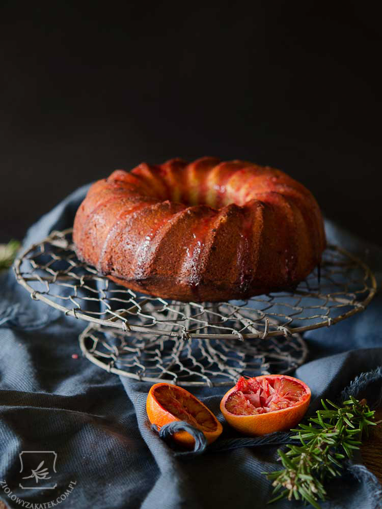 Ciasto jest łatwe do zrobienia (jak ciasto ucierane), jednak uroku dodaje mu pomarańczowo-rozmarynowy syrop oraz teoretycznie różowy lukier:)