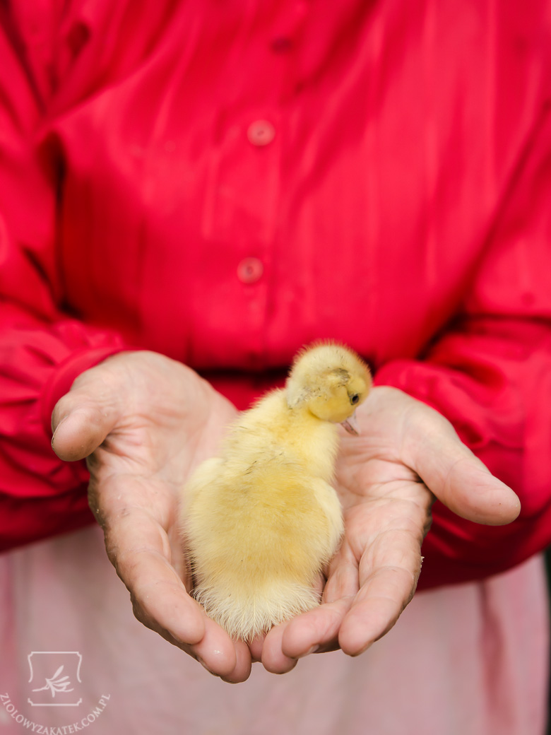 Na zdjęciu widzicie moją Babcię trzymającą małą kaczuszkę. Zdjęcie jest radosne, wszystko wydaje się być w porządku, ale była to kaczuszka, która od urodzenia była „inna” – nie mogła utrzymać główki w pionie, prawdopodobnie miała jakąś chorobę neurologiczną. Babcia odseparowała ją od reszty kaczątek (kaczki jak i kury są bezwzględne, jeśli wśród nich znajdzie się jakieś pisklę czy dorosły ptak chory lub słaby), karmiła tę kaczuszkę osobno, kładła ją na ciepłą trawę, a w nocy przykrywała, aby nie zmarzła. Domyślała się, że kaczuszka długo nie pożyje, ale mimo wszystko ją chroniła i robiła wszystko, aby jej pomóc. Rzeczywiście, kilka dni później pisklątko zdechło, jednak nie miało to dużego znaczenia: znaczenie miało to, że trzeba było spróbować pomóc,nawet jeśli to obiektywnie nie ma sensu. Taka jest właśnie moja Babcia. Myślę, że nawet nie byłaby zadowolona, gdyby dowiedziała się, że piszę o tym na blogu, bo uważa, że jeśli coś dobrego się robi (to właściwie nawet wchodzi w kategorie „rzeczy oczywistych”) to nie trzeba się z tym obnosić.
