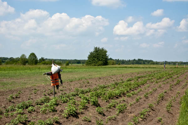Strachy. Nie tyle na wróble, co na dziki, które stają się coraz bardziej uciążliwe (mojej Babci popsuły mnóstwo ziemniaków. Strasznie mi jej było żal, tyle czasu spędzili z Dziadkiem na sadzenie, okopywanie, plewienie tych ziemniaków a teraz wszytko zryte przez dzika..)