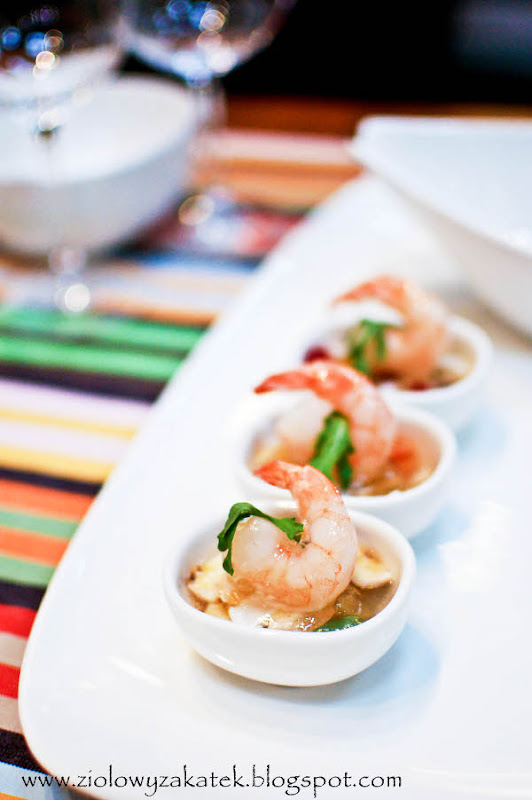 To była tylko przystawka. Teraz bierzemy kawałki przepiórki, podsmażamy na patelni a następnie dolewamy koniak i „flambujemy” (Czyli co robimy? – zapytałam sama siebie. Po chwili zobaczyłam, co kucharz miał na myśli):