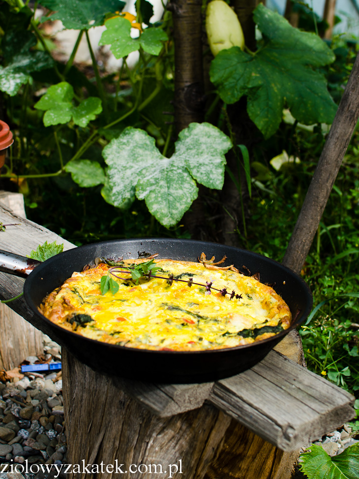 Prosta i sycąca fritatta (taki podpiekany omlet jajeczny) powstała w większości ze składników dostępnych w naszym ogrodzie. Dziś okazało się, że była właściwie podsumowaniem sezonu ziołowego i symbolicznym zakończeniem lata: kiedy wyszłam do ogrodu okazało się, że część moich ziół (w tym ukochane shiso) niestety przegrała walkę z nocnym przymrozkiem..