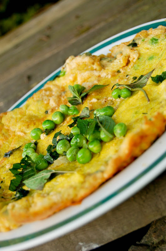 A przepis? Cóż, improwizacja ale dość smaczna improwizacja – smażony na oliwie z miętą świeży groszek położony na puszystym omlecie. Mi smakowało. :-) Właściwie najbardziej smakował groszek, szkoda, że nie zrobiłam całej miseczki.
