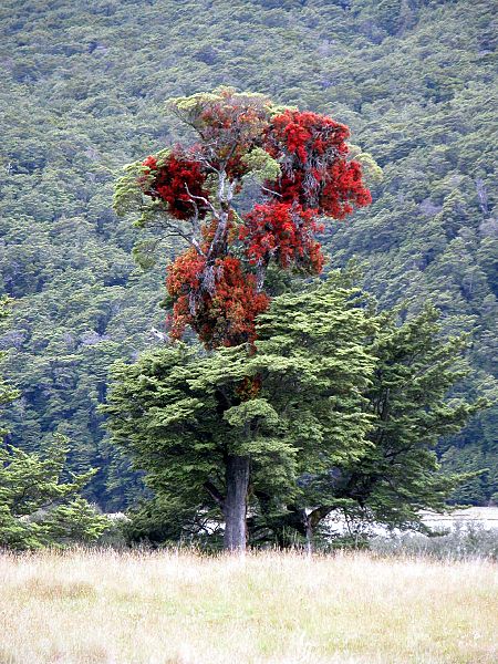 O tym, że jemioła jest rośliną pasożytniczą, wie chyba każde dziecko:-). Jednak jej klasyfikacja biologiczna nie jest już dziecinnie prosta. Jemioła to półpasożytniczy krzew, który dawniej był zaliczany do rodziny jemiołowatych, dzisiaj jednak klasyfikuje się ją jako roślinę z rodziny sandałowcowatych. To ta sama z której pochodzi niezwykle cenne, indyjskie drzewo sandałowe. Pod sufitem mamy powieszoną jemiołę pospolitą, zwaną też jemiołą europejską (Viscum album) i to ona wcześniej była nazywana „jemiołą” (ang. misteltoe). Potem nazwę rozszerzono także na inne jemiołu , ale na całym świecie występują przeróżne odmiany jemioły. Jedne, podobnie jak nasza jemioła, mogą mieć zastosowanie lecznicze, inne są trujące. Jemioły rosną od Australii po Amerykę i mogą wyglądać bajecznie. Poniżej piękna jemioła z Nowej Zelandii: