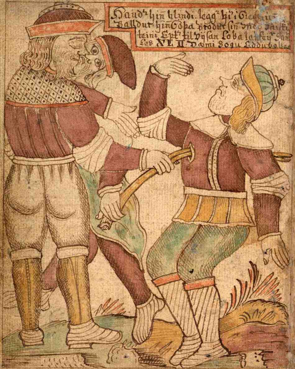 Śmierć Baldera. Dziwna, średniowieczna rycina:
