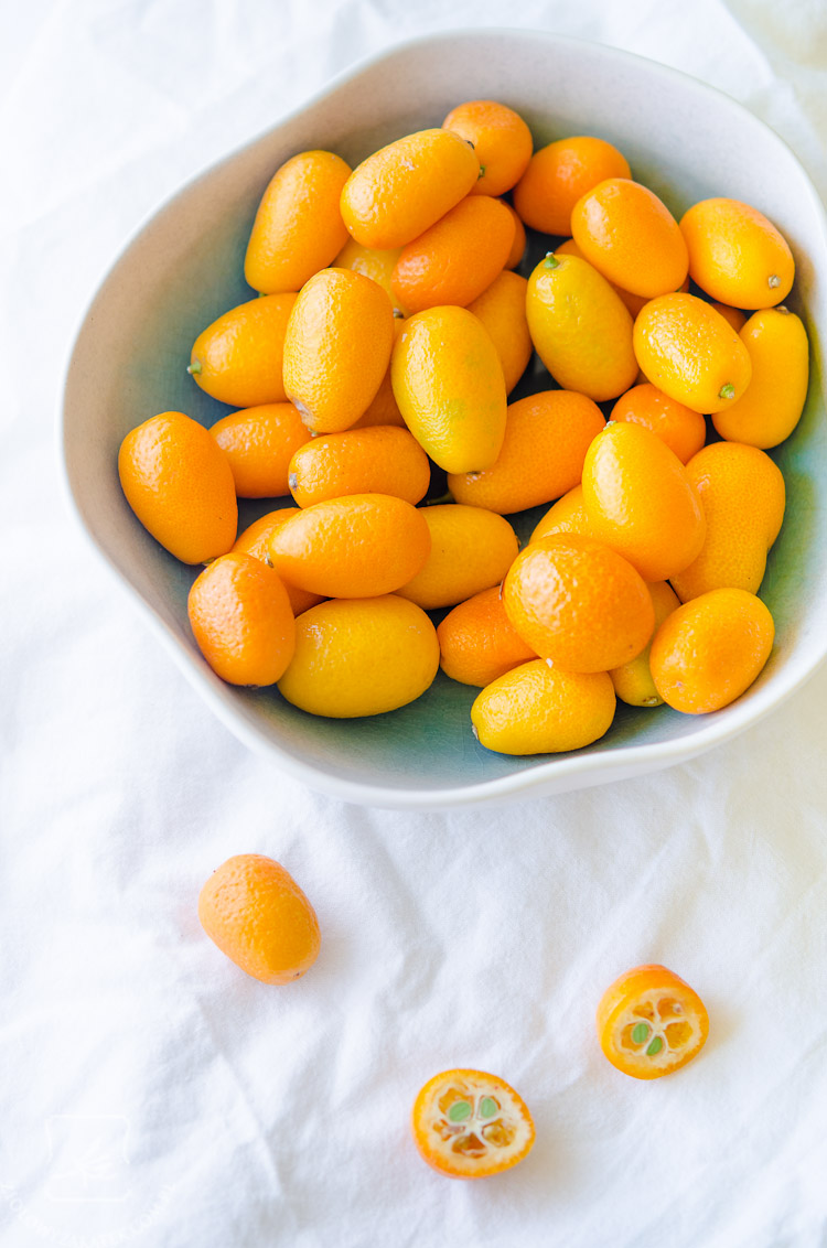 Przyznam, że nie znalazłam wiele informacji o kumkwacie – wygląda jak miniaturowa pomarańcza lub mandarynka, zresztą ma to też odzwierciedlenie w nazwie – kumkwat to po chińsku „złota pomarańcza”. Roślina należy do tej samej rodziny co inne cytrusy (rutowatych). Podobnie jak liczi pochodzi z Państwa Środka, jednak uprawia się je też po drugiej stronie kuli ziemskiej – na przykład w Brazylii.