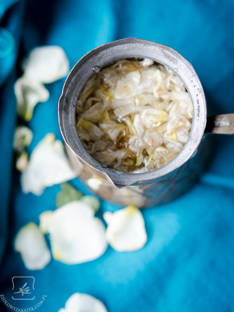 Samodzielnie przygotowany syrop cukrowy o zapachu polskiej róży..