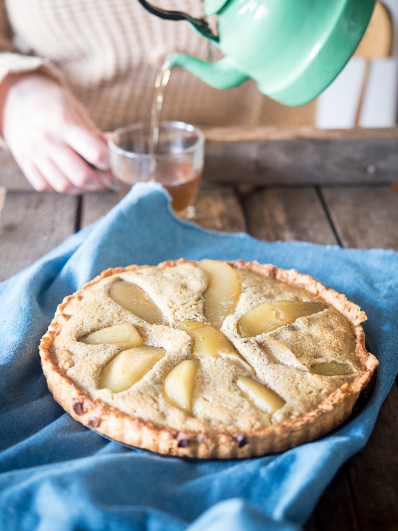 Do tego przepisu postanowiłam podejść tak, jak do każdego innego przepisu na tartę: zrobiłam spód oraz nadzienie takie, na jakie miałam akurat ochotę. Wybór padł na krem orzechowy z gruszkami w cukrowym syropie.