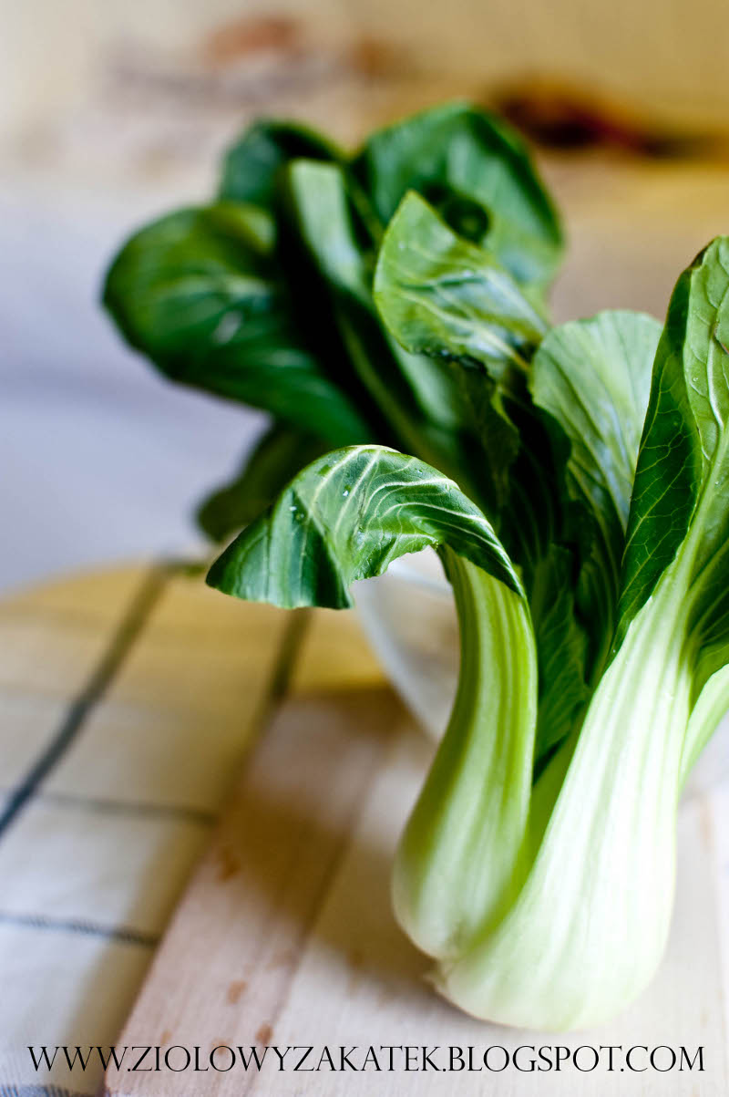 pak choi – kupiłam na Starym Kleparzu. Zachęcam do wypróbowania, jeśli macie taką okazję. Potraktowałam ją w dość brutalny sposób (szybkie smażenie przez niecałą minutkę), jednak jest świetna, chrupiąca i jednocześnie jedwabista, bez śladu goryczki. Polecam, jeśli się natkniecie na ładne sztuki!