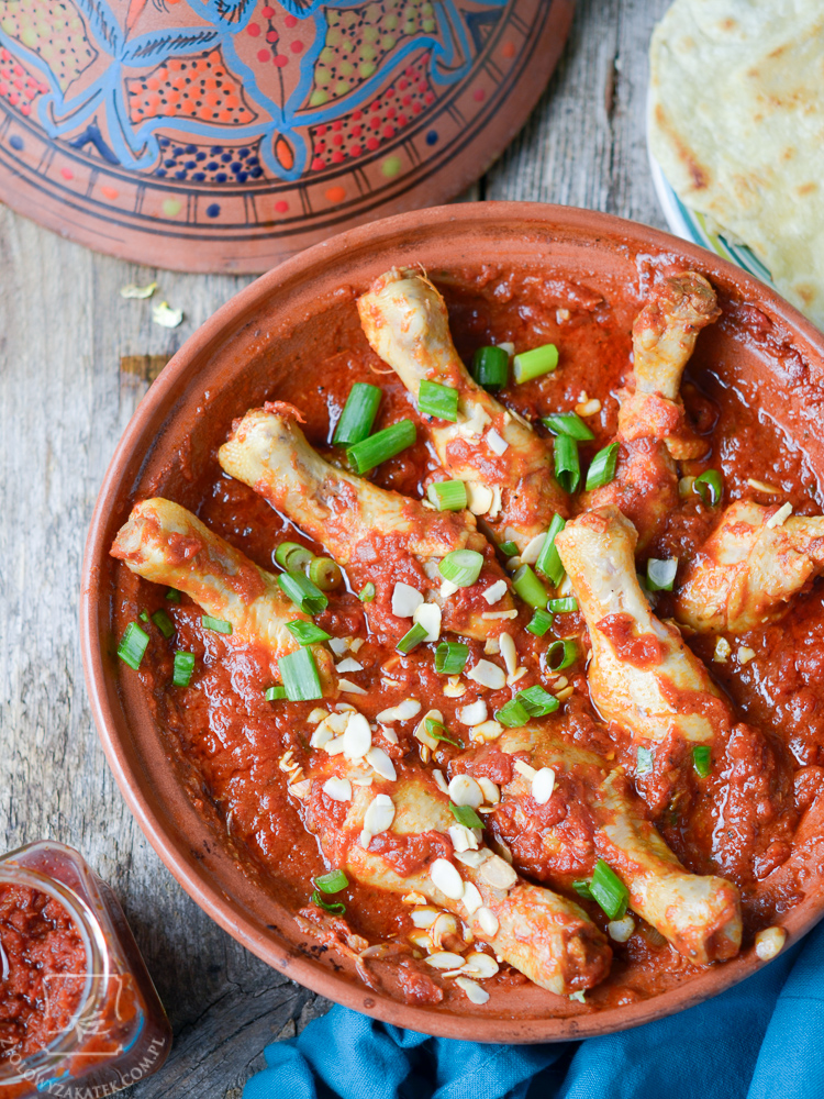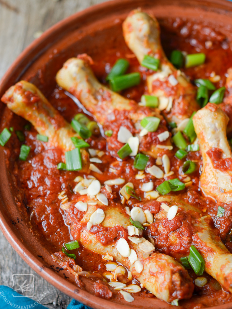 Marokańskie tażin – kurczak w sosie pomidorowo miodowym.