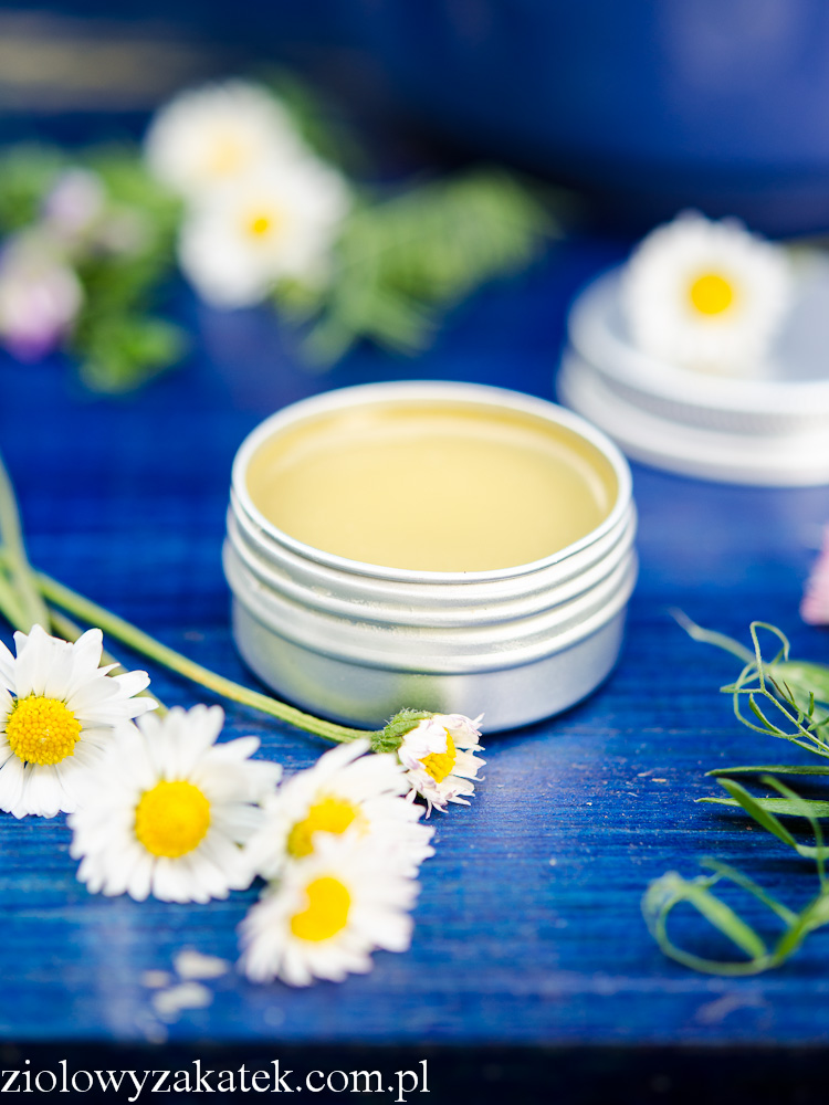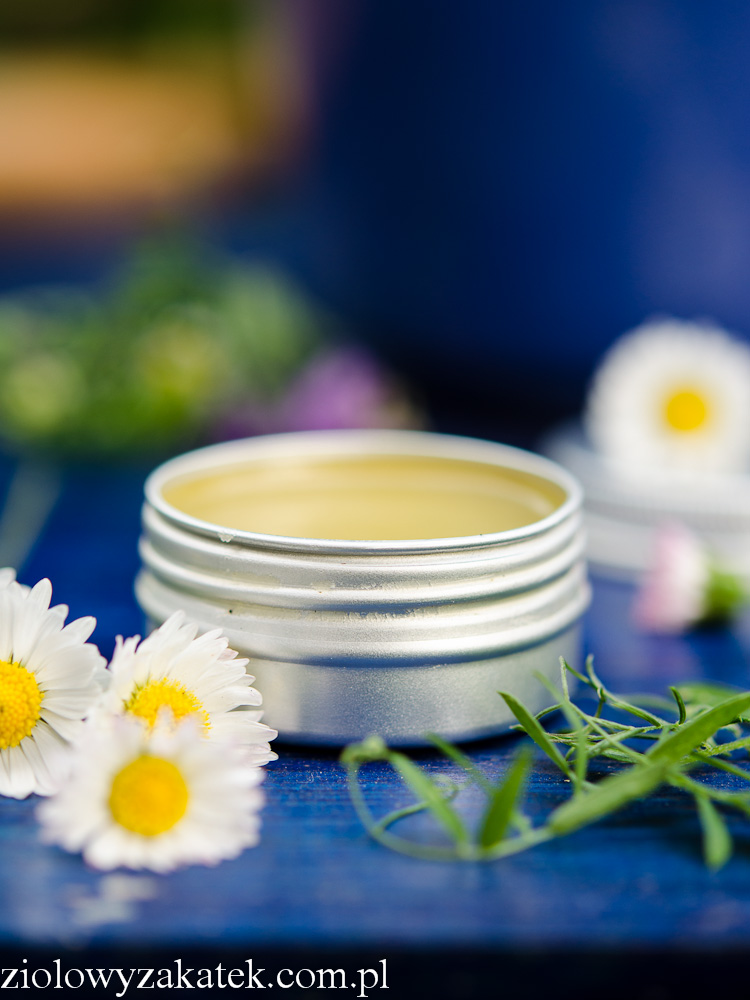 Przyznam, że nie jestem pewna, czy powinnam nazwać ją maścią: efektem naszych starań będzie puzderko wypełnione dobroczynnymi właściwościami stokrotek od dość zwartej konsystencji – zamierzam nosić ze sobą maść, stąd też chciałam, żeby przypominała konsystencją pomadkę do ust. Wystarczy potrzeć palcem i z łatwością wydobywamy słodko pachnącą warstwekę maści.