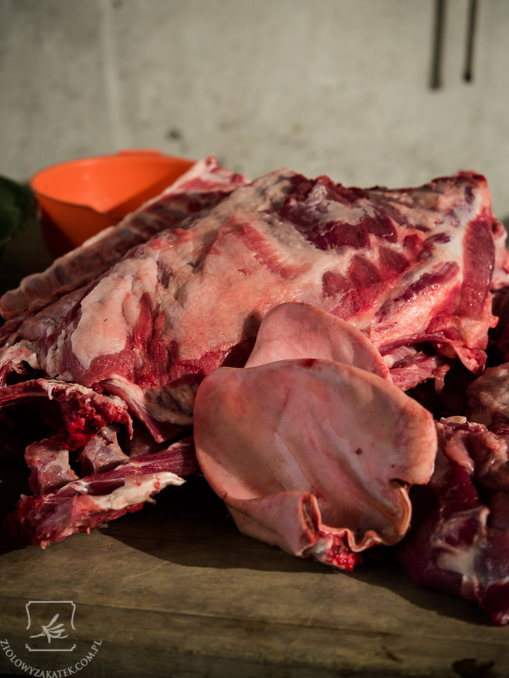 Dowiedziałam się o nim dzień przed. Mieliśmy pecha, ponieważ nasz umówiony rzeźnik miał wypadek i musieliśmy szukać zastępstwa. Początkowo planowałam przygotować dla Was relację z rozbioru tuszy, jednak nie było takiej szansy, żebym zdążyła przyjechać na wieś z Krakowa na 7 rano. Jednak zebrałam się skoro świt i udało się przybyć przed południem, przygotowałam materiał z tego, co miałam pod ręką.