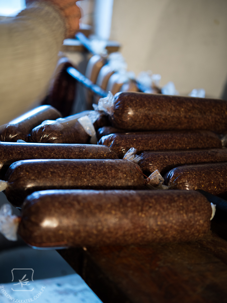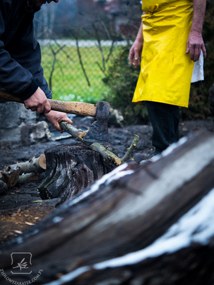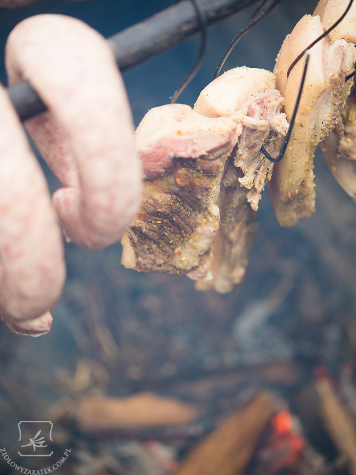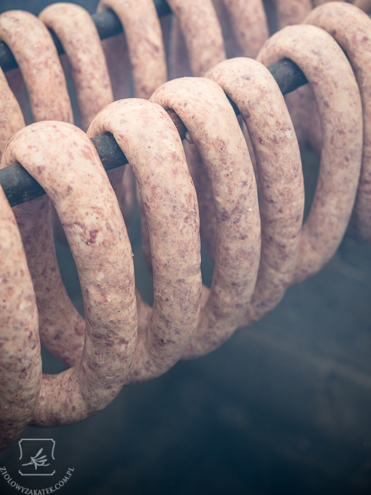 Wędzenie kiełbasy – mój Dziadziuś wędził tylko na najlepszym drewnie z jabłoni. Był perfekcjonistą w tym temacie. Właściwie nikt z naszej rodziny nie wiedział dokładnie jak wędzić, ponieważ Dziadziuś był tutaj niepodzielnym mistrzem. Nie wiem, czy byłby z nas dumny;) My mieliśmy drewno z olchy.