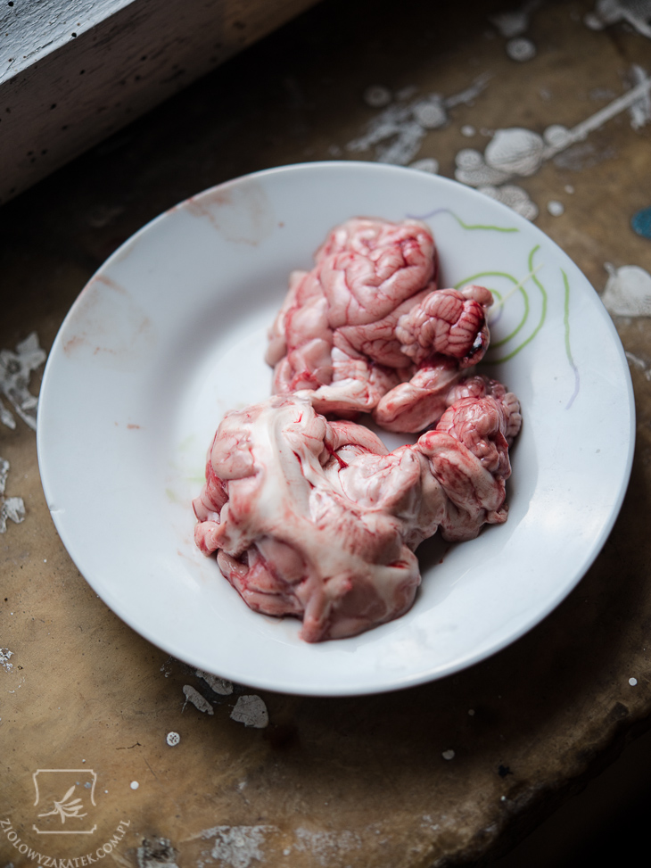 A to surowy mózg. Zazwyczaj smażył go i jadł mój Wujek, ale tym razem zarezerwowałam go dla siebie. Właśnie, obgotowany, czeka w lodówce na swoją kolej.