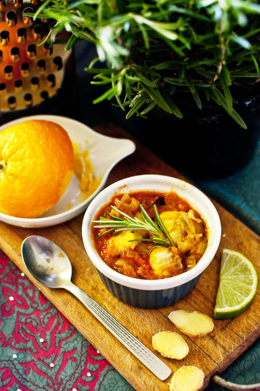 Danie może i jest smaczne (chociaż wzdragam się jakoś przed gotowaniem ryby w bulionie), wygląda popisowo, jak w menu drogiej restauracji, jest oryginalne.. tyle, że nie miałam ochoty na jedzenie a la droga restauracja. Miałam ochotę na szybkie danie, pełne słońca, koloru, wibracji, danie w którym dużo się dzieje ale równocześnie jeden smak nie tłumi drugiego. I na dodatek będzie w nim pomarańcza, koniecznie! Taka już jestem zachłanna :-)