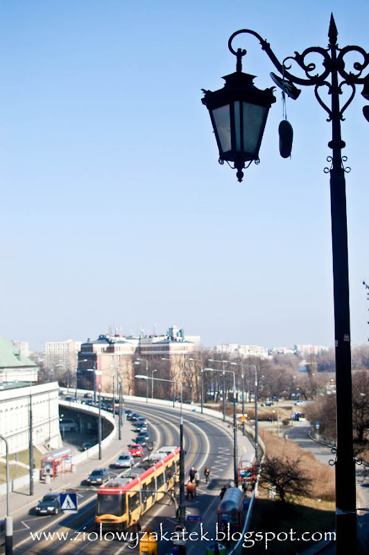 Panorama Warszawy. Zwróćcie uwagę, na gustownie zawieszone na latarni trampki..