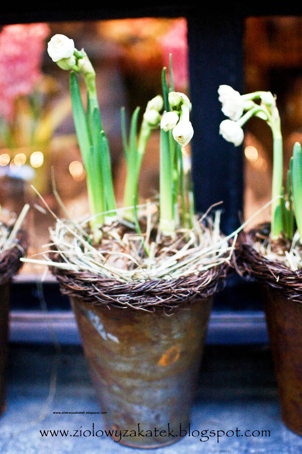Wystawa przed kwiaciarenką, która mnie zachwyciła. Po obfotografowaniu jej ze wszystkich stron, weszłam do środka i pogratulowałam Pani pracującej w kwiaciarni, że stworzyła taką śliczną wystawę. Pani wydawała się mile zaskoczona:)