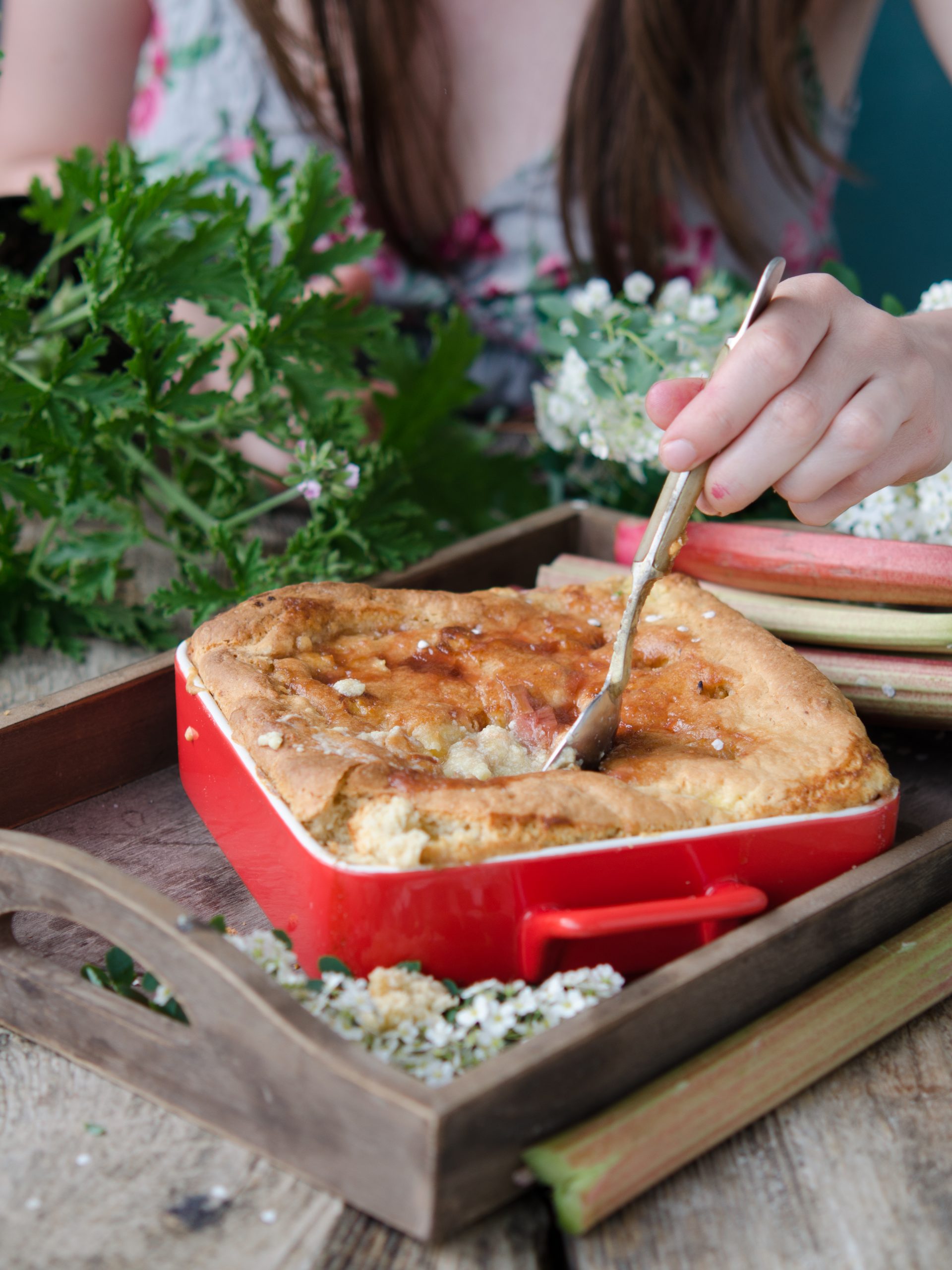 Chciałam Was dzisiaj zaprosić na deser rabarbarowy. Przygotowywałam go oczywiście z rabarbaru, tutaj znajdziemy także krem custard (właściwie wariację na jego temat) oraz chrupiące ciasto z migdałami na wierzchu.Deser wymaga nieco zachodu, jednak efekt jest bardzo ciekawy – niezbyt słodki, smaki dobrze się uzupełniają. Mamy słodki krem i orzeźwiający smak rabarbaru.