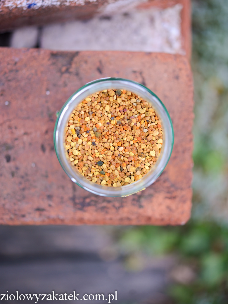 Skoro już jesteśmy przy tym temacie, czym właściwie jest pyłek pszczeli (po angielsku szukajcie pod „bee pollen”, po polsku ładnie to „obnóża” bo to właściwie pyłek kwiatowy oblizany przez pszczoły)?