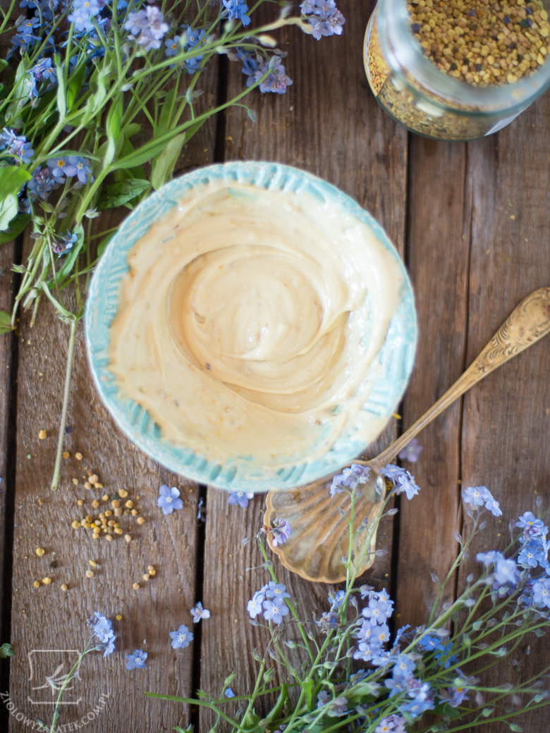 Pamiętacie wpis dotyczący odczulania pyłkiem pszczelim? Od tamtego czasu co chwilkę podchodzę do małych pyłkowych ziarenek i zastanawiam się, co ciekawego jeszcze z nimi wykombinować. Kuszą mnie przeróżne opcje, ale jedną z nich jest oczywiście zastosowanie kosmetyczne.