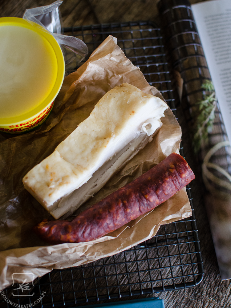– lekko wędzona słonina z mangalicy. O ile lardo jest takie bardziej twarde i suche, o tyle ta słonina jest bardzo delikatna, rozpływająca się w ustach i oczywiście, nieprzyzwoicie tłusta. Kroję na cieniutkie kawałeczki i jem na kanapkach*