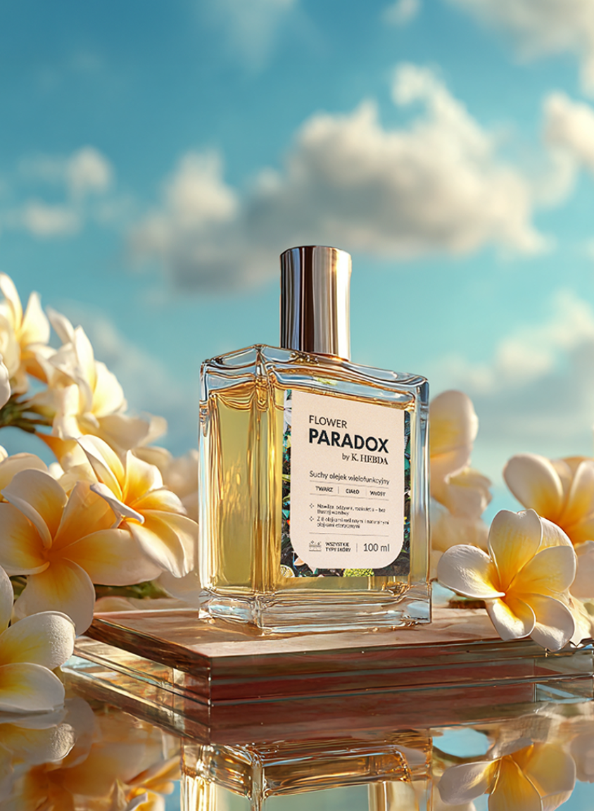 Suchy olejek Flower Paradox na tle kwiatów + Perfumy Flower Paradox na tle kwiatów – elegancki zapach dla kobiet z charakterem