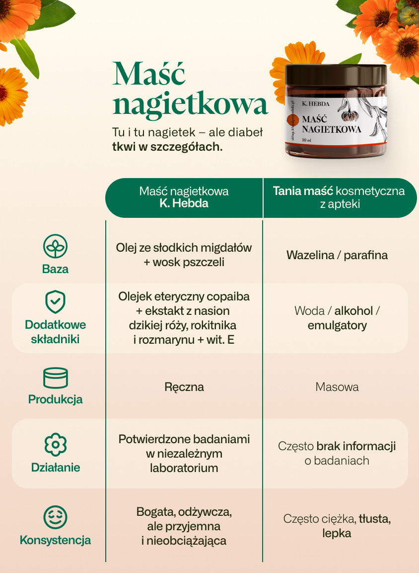 • maść ziołowa, która naturalnie regeneruje mocno podrażnioną i zaczerwienioną skórę;