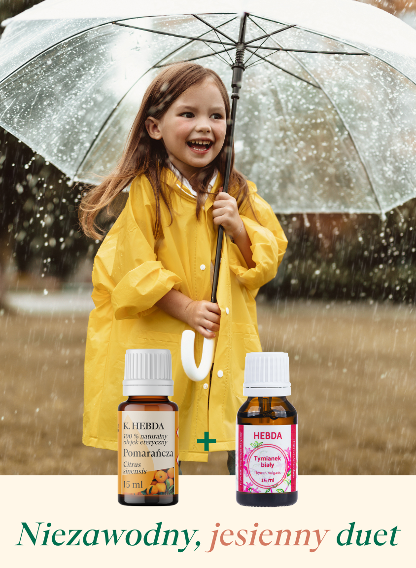 olejek eteryczny pomarańczowy + Balsam Lekki Oddech K. Hebda – naturalny balsam o ziołowym zapachu wspierający komfort oddechowy, packshot na białym tle. + olejek tymiankowy