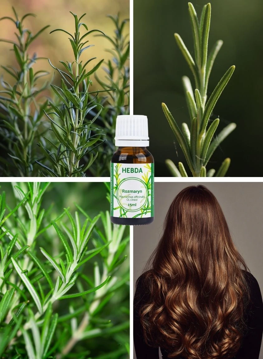Olejek Rozmarynowy K. Hebda 15 ml – naturalny olejek eteryczny z rozmarynu + Naturalna Aromabaza do masażu Klaudyna HEBDA w brązowej butelce z pompką, idealna jako aromaterapeutyczna baza zapachowa.