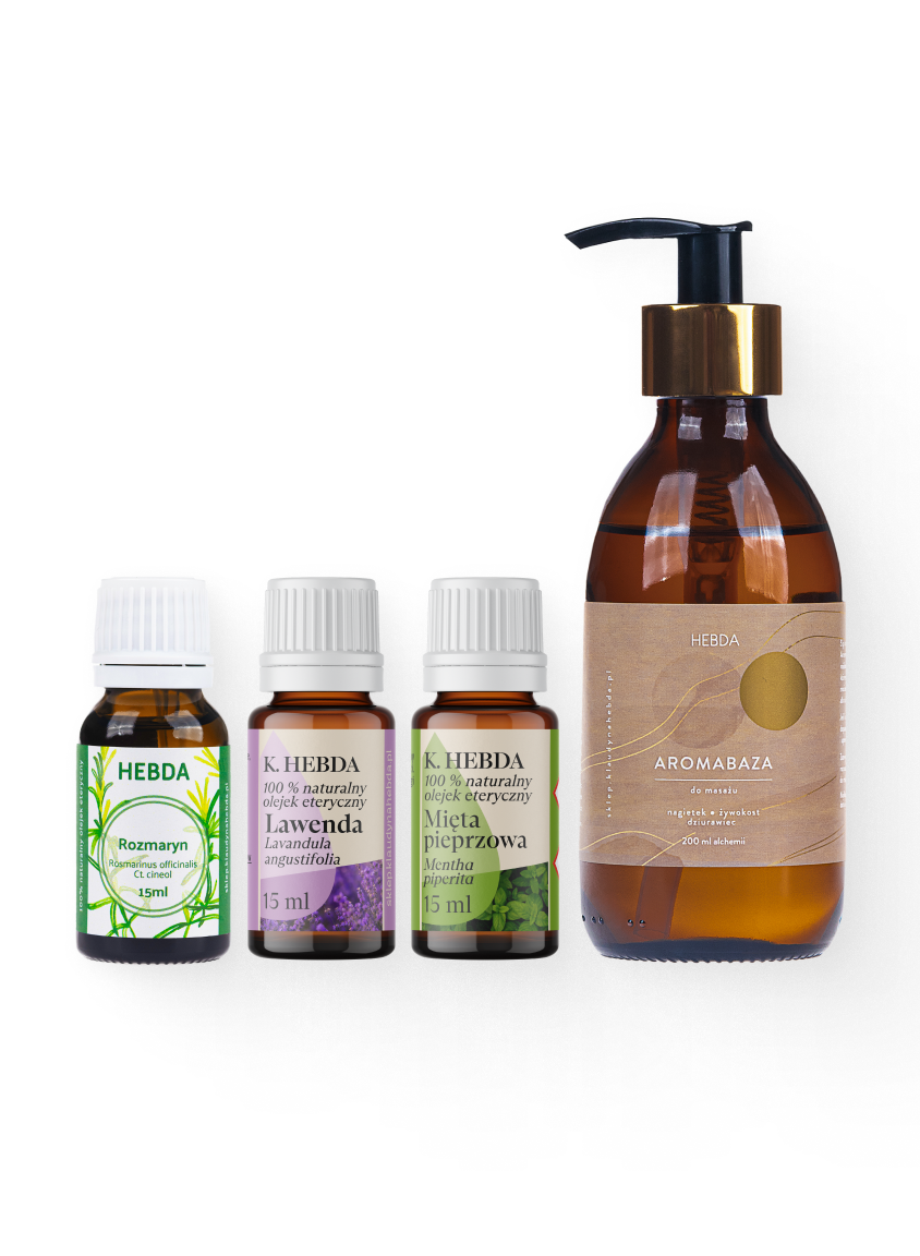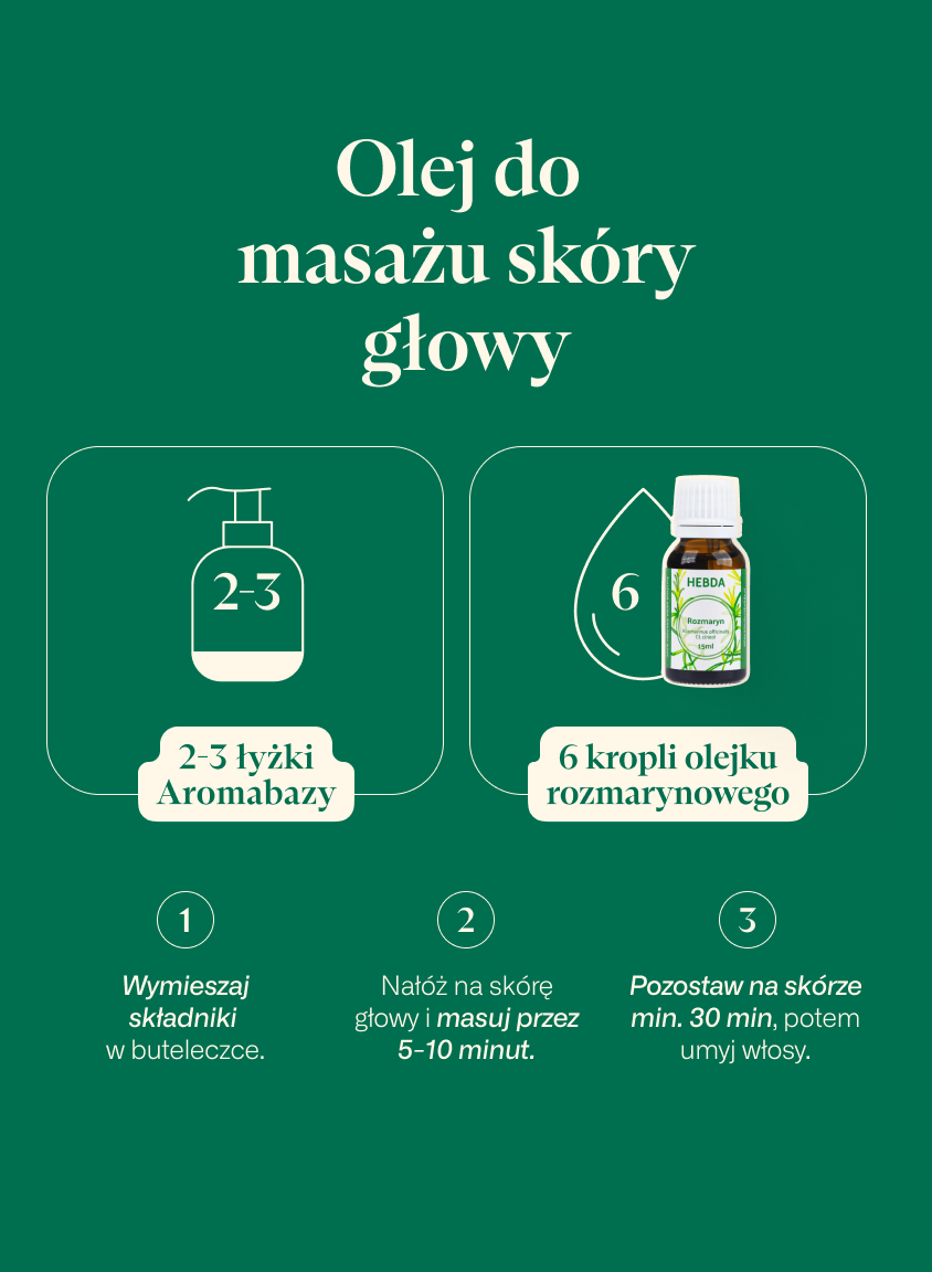 Odkryj moc olejków eterycznych i roślinnych maceratów w jednym kompletnym zestawie do pielęgnacji włosów i skóry głowy. Co w nim znajdziesz? Olejek rozmarynowy, lawendowy i miętowy oraz Aromabazę – harmonijną mieszankę olejów i maceratów roślinnych z witaminą E.