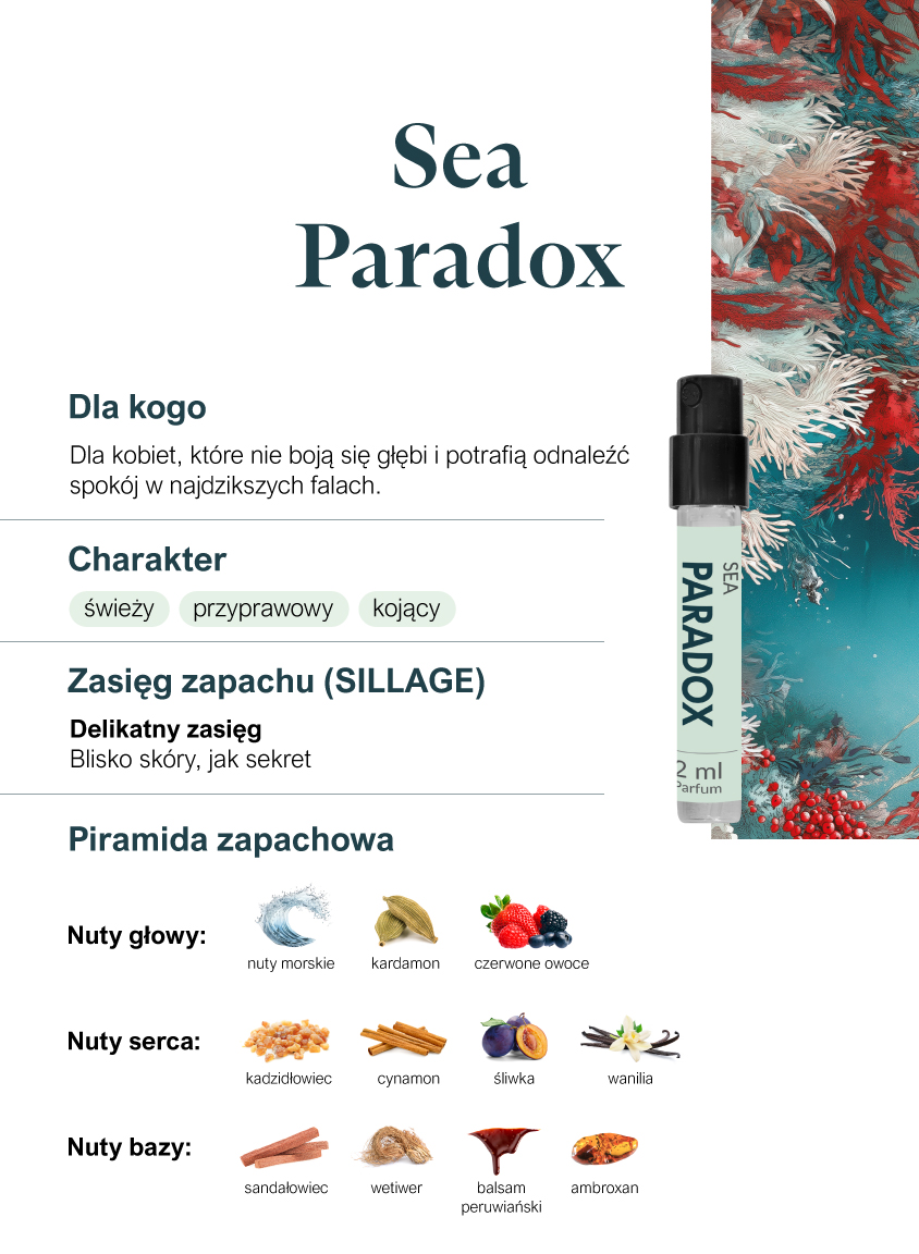 2 ml wystarczą, żebyś sprawdziła, jak Sea Paradox rozwija swoje zapachowe nuty na Twojej skórze.