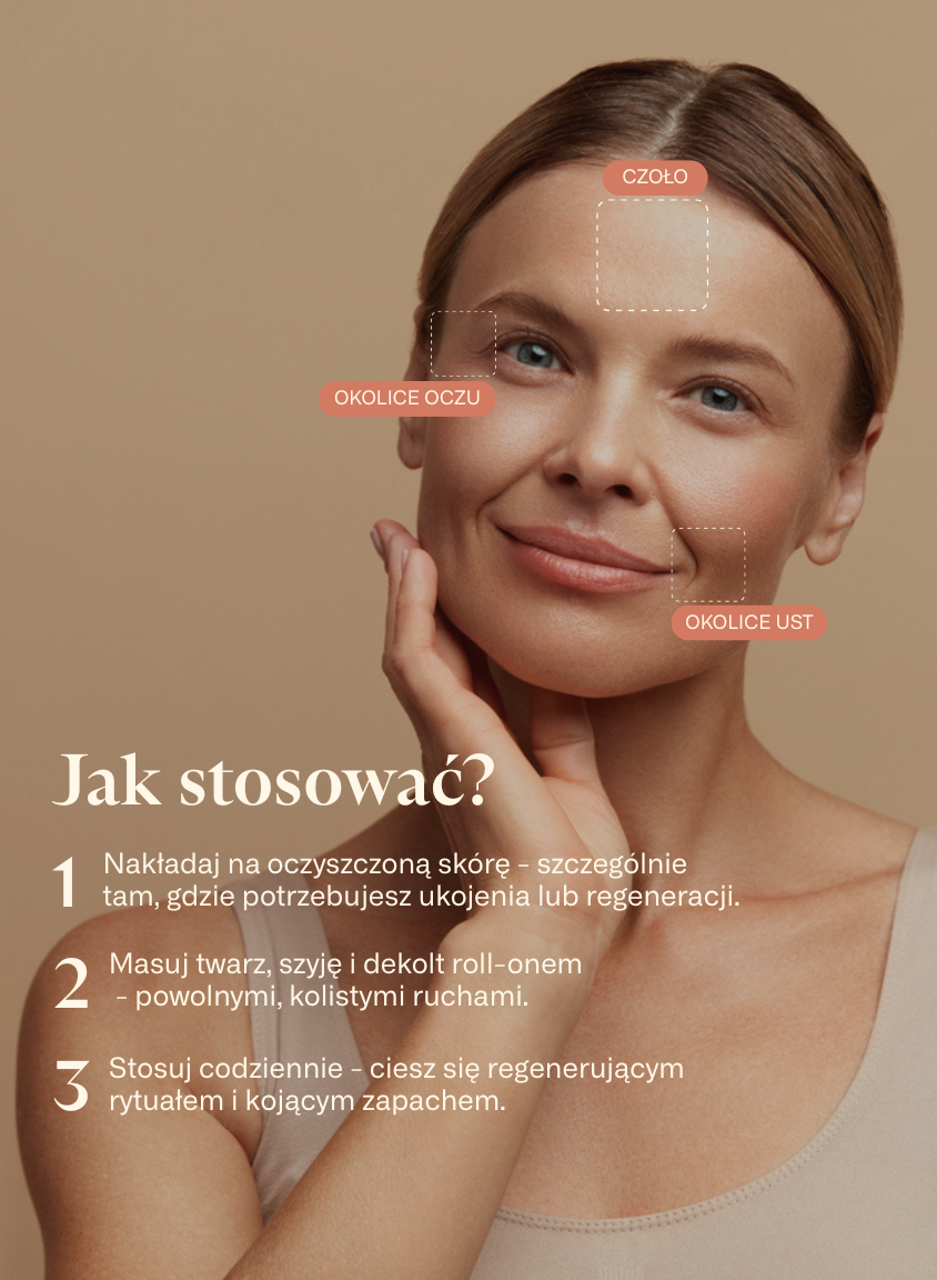 • szybka aplikacja na skórę całej twarzy lub „aplikacja strategiczna” obszarów o specjalnych potrzebach, np. linii mimicznych, podrażnień czy przesuszeń;