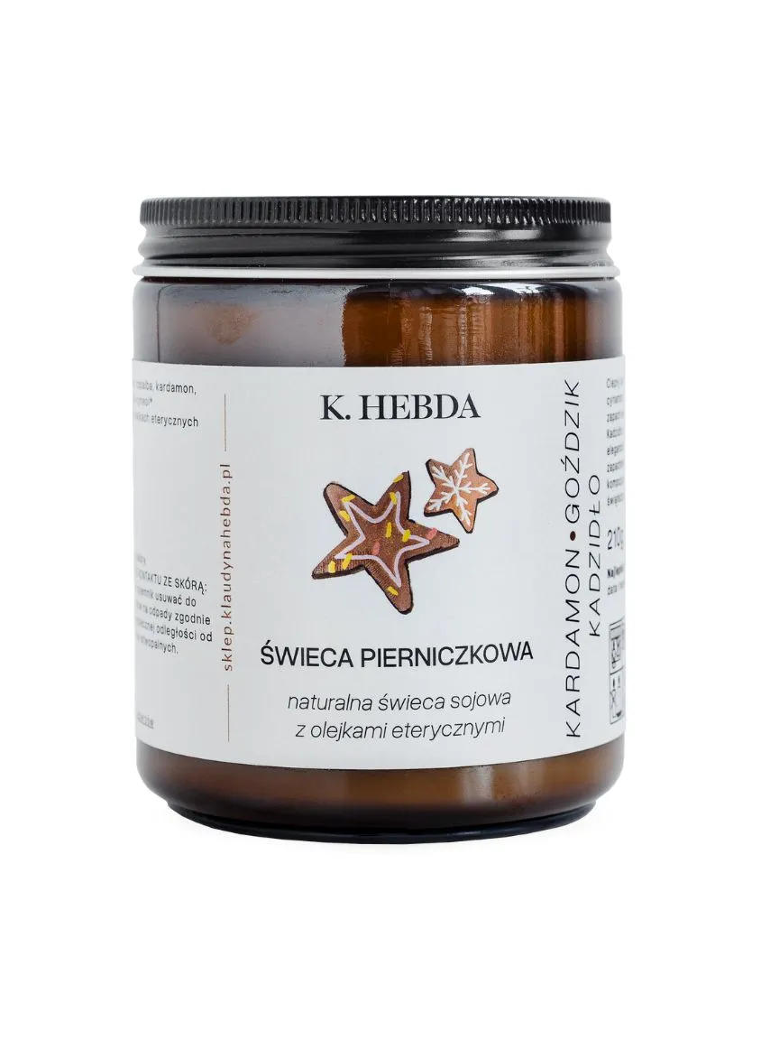 Ręcznie robiona, sojowa świeca Pierniczkowa to: