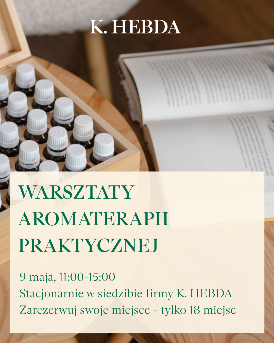 Zapraszamy na unikalne Warsztaty Aromaterapii Praktycznej, które odbędą się 9 maja w siedzibie firmy Klaudyna Hebda Nature w Zabierzowie k. Krakowa.
