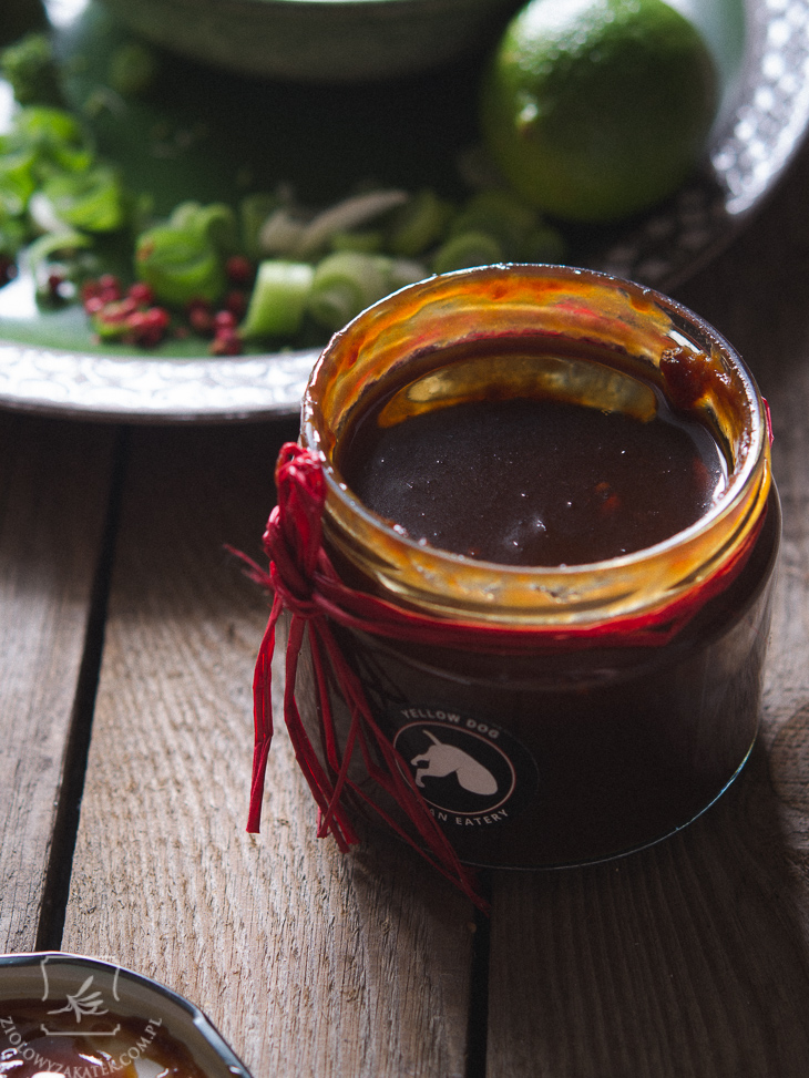 Ten konkretny sos hoisin można kupić w krakowskiej restauracji Yellow Dog, robią go (nie wiem niestety jak) na miejscu. Oczywiście, można użyć gotowego sosu hoisin z marketu, ale nie będzie miał tego fajnego, śliwkowego posmaku.