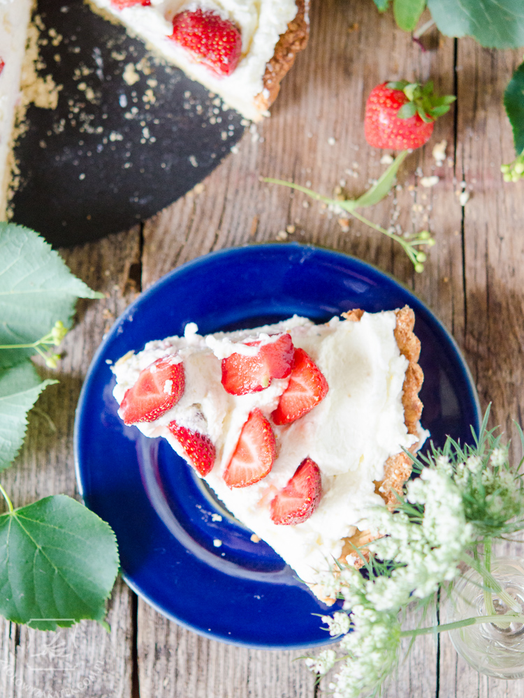 Dzisiaj przygotowałam dla Was bardzo prosty i letni przepis na tartę truskawkową na migdałowym spodzie (tak, czasem robię normalne rzeczy;)).