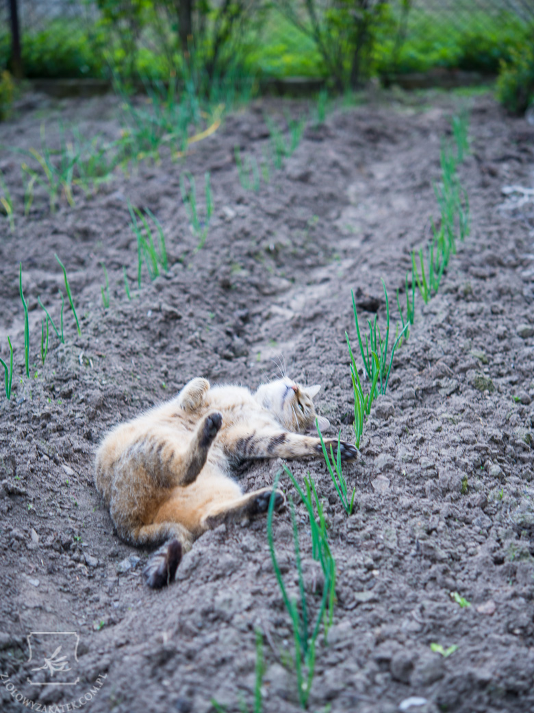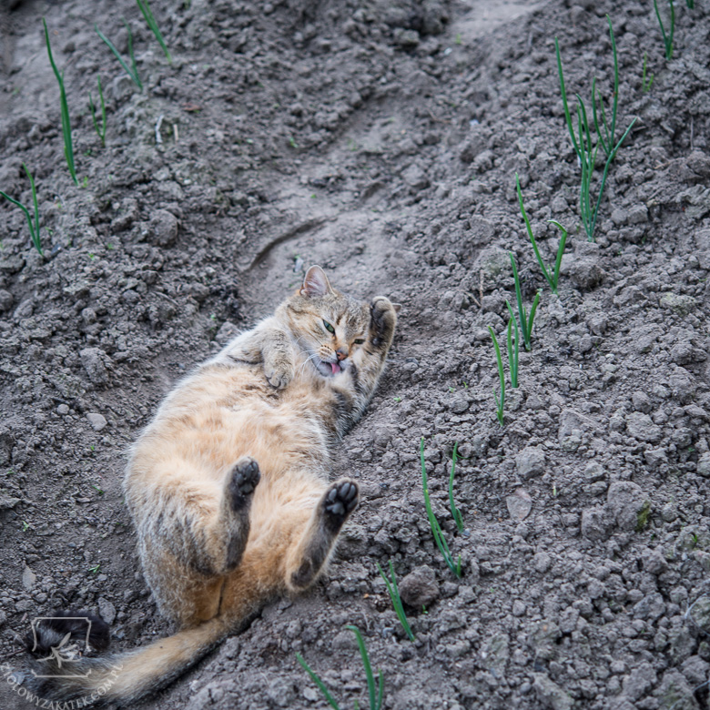 Kot jest kotem, więc może wylegiwać się na ciepłej ziemi jak się mu podoba.